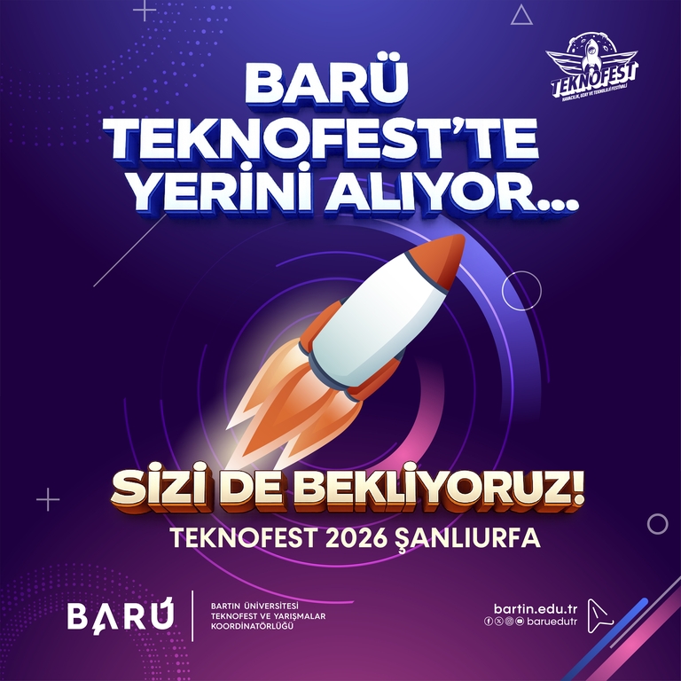 Bartın Üniversitesi bünyesinde öğrencilerimizin bilim, teknoloji ve inovasyon alanlarında kendilerini geliştirmelerini desteklemek amacıyla Teknofest ve Yarışmalar Koordinatörlüğü kurulmuştur. Koordinatörlüğümüz; ulusal ve uluslararası yarışmalar hakkında bilgilendirme yapmak, takım kurma süreçlerinde rehberlik etmek ve proje geliştirme aşamalarında öğrencilere destek olmak üzere faaliyet gösterecektir.